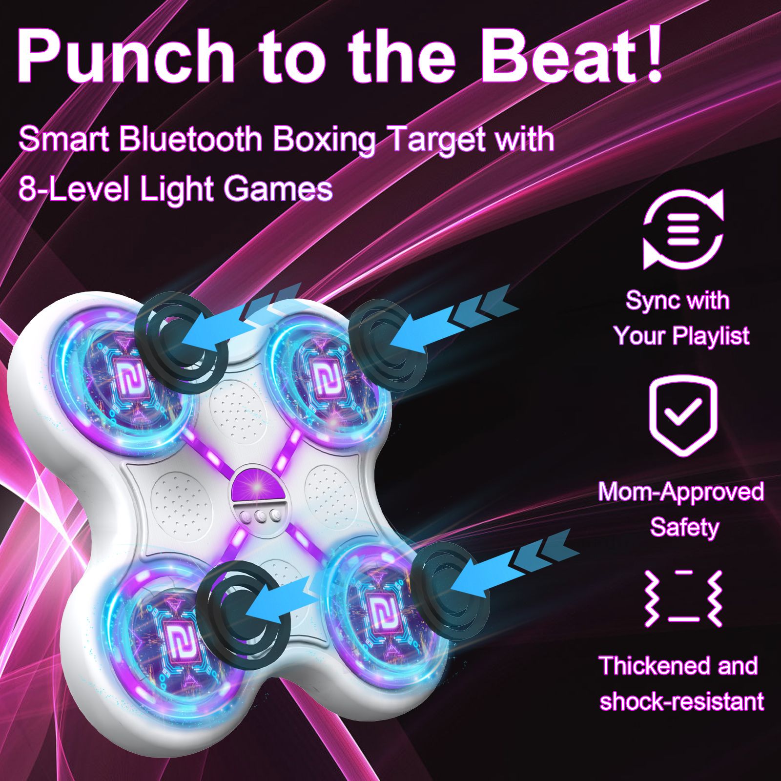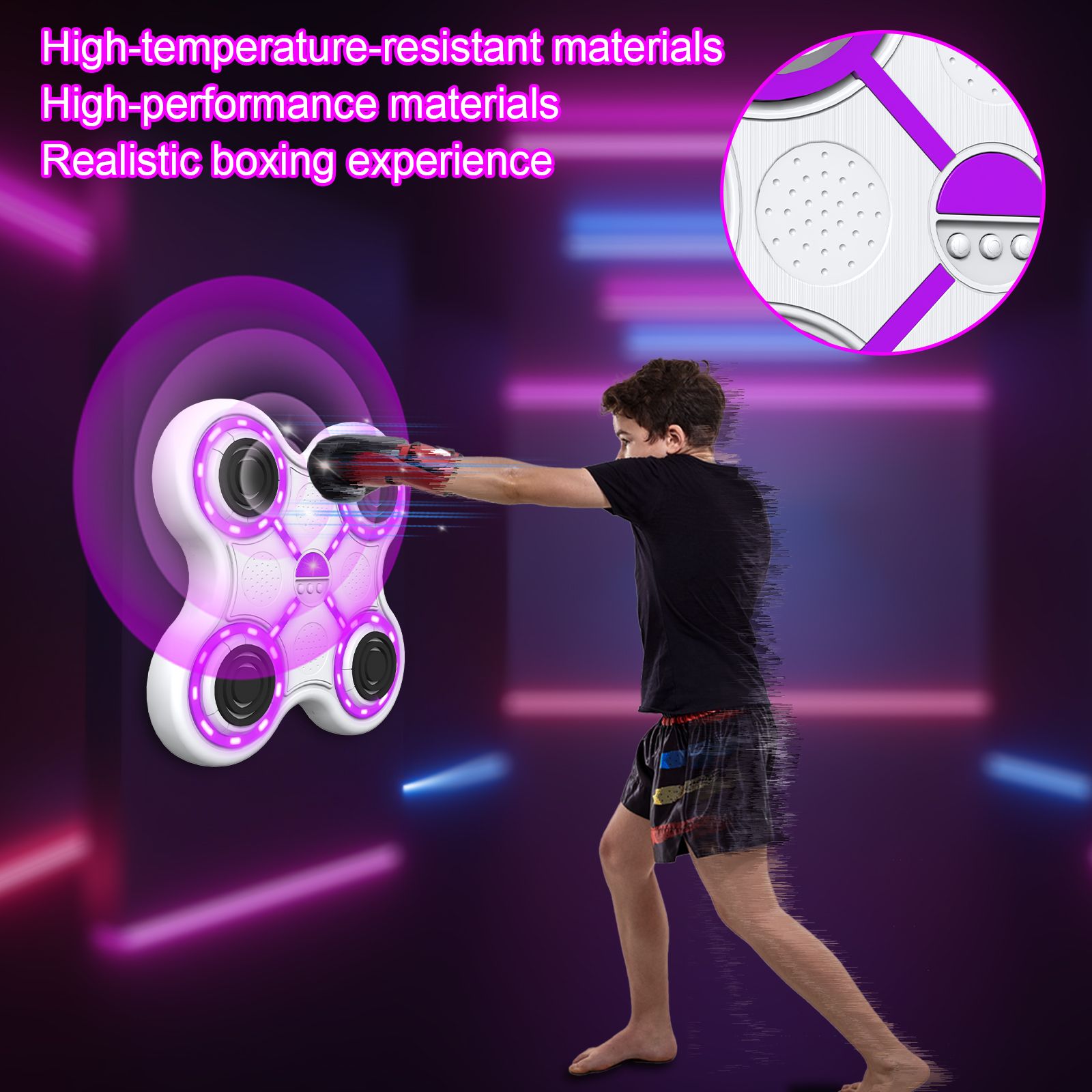 • Music-Synced Boxing Workouts – Multiple modes and speeds light up the four targets in rhythm with built-in music for fun, engaging training.