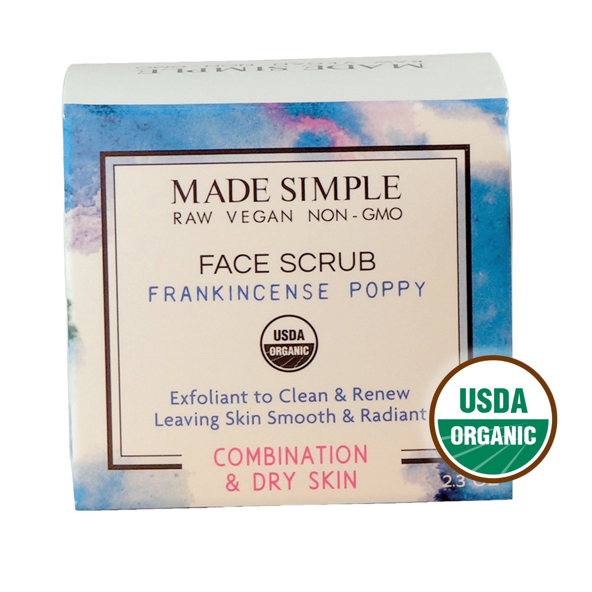 1.Made Simple Skin Care USDA certified organic, vegan, plant-based, cruelty-free frankincense poppy face scrub