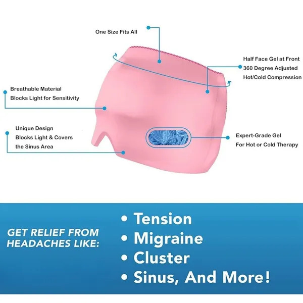 4. Freely Stretches Without Damage. The headache relief hat is highly elastic and can be stretched without deformation to fit most head shapes. The special design of the "V" shaped hole can provide the best breathing and fit the nose contour. Pulling the headache cap down to the nose can help