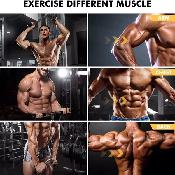 The straight pulldown bar is designed with a Non-slip handle to increase the training effect and prevent accidental sliding while exercising. Constructed of high-quality solid steel with a polished chrome finish. A 0.6-inch hole can fit easily for all cable systems. Textured rubber coating handle, provides ergonomic & secured grip during workout, provides a balanced force to both arms when attached it to any gym machine.