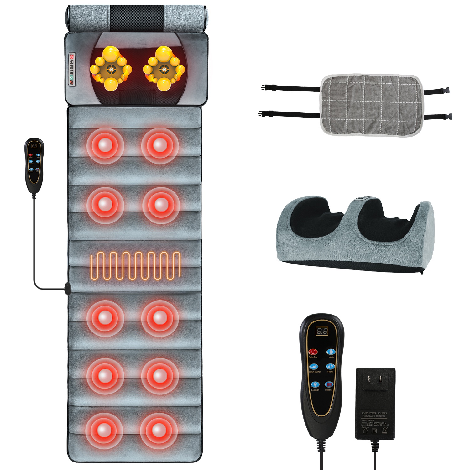 - Multifunctional Massage Mat: Our full body massage mat features 10 massage points, including Back, Buttock, Waist, Thigh, Calf, and heating therapy function on lumbar zones. It's able to give you a therapeutic massage that helps release tension, stress, and fatigue after a long workday. You can choose 9 designated vibration modes, 9 point-selection vibration modes, 3-level heating levels, and enjoy full control over 9-level vibration intensity and 9-level speeds as you hit all the right spots.