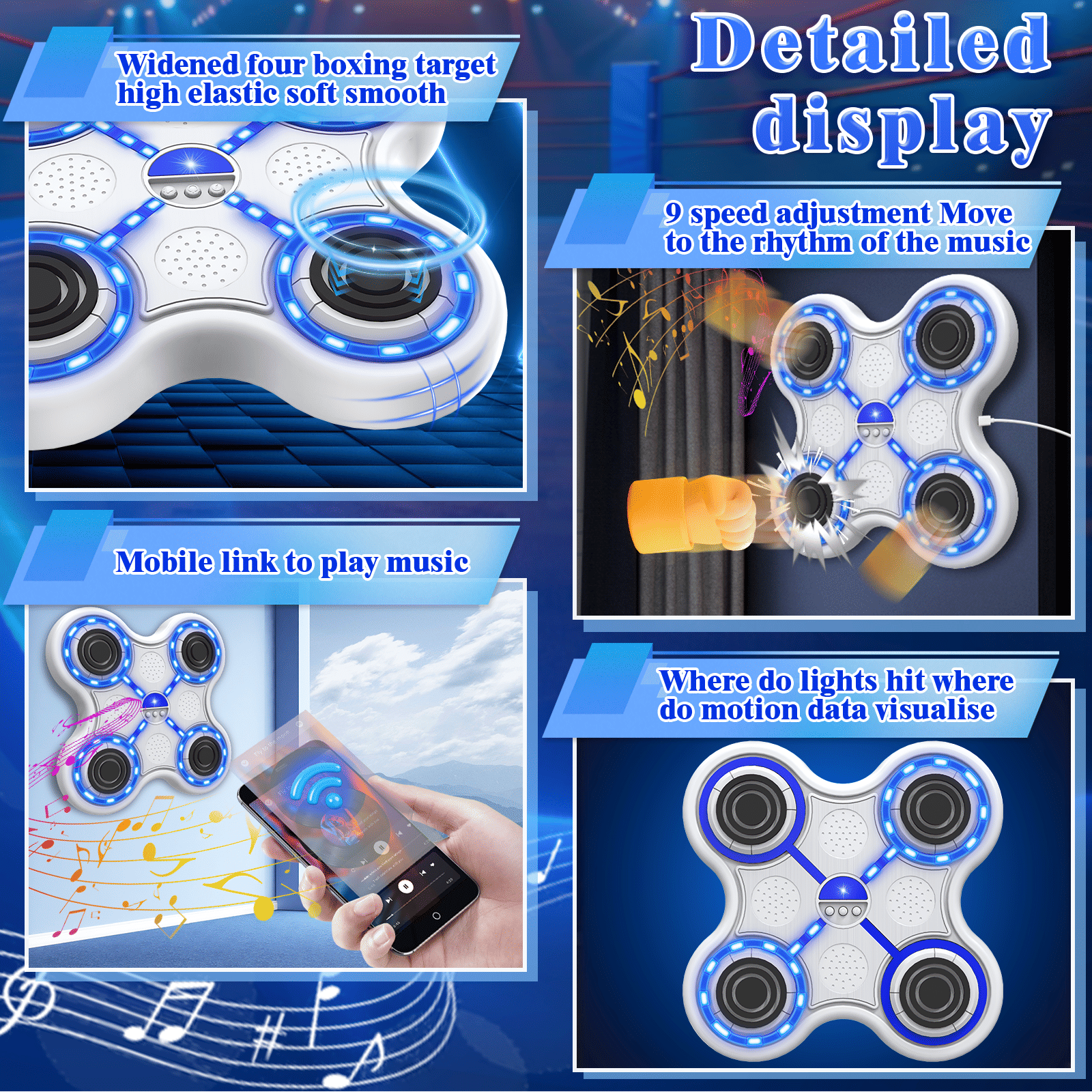 Four key boxing target-white body-white keys-blue light-black Four key boxing target-white body-white keys-blue light-black Four key boxing target-white body-white keys-blue light-black