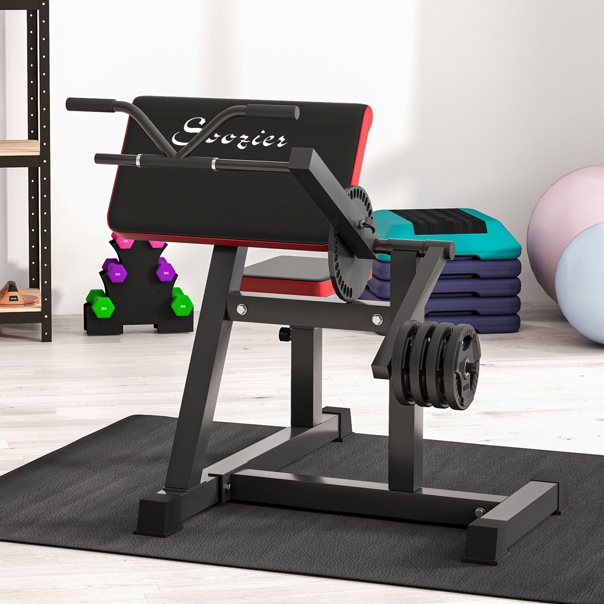 Transform your home into a personal training ground with Soozier's 2-in-1 tricep extension and preacher curl bench. It holds 1" standard weight plates, letting you work your way up to 132 lbs., tricep or bicep. Built for users of all sizes, its soft seat and elbow pad adjust 5 and 6 heights accordingly, so you can keep your mind on the next rep. Enjoy 25 separate starting angles, working out both sides of your arms to optimize upper body strength. Lift big, score big with Soozier.