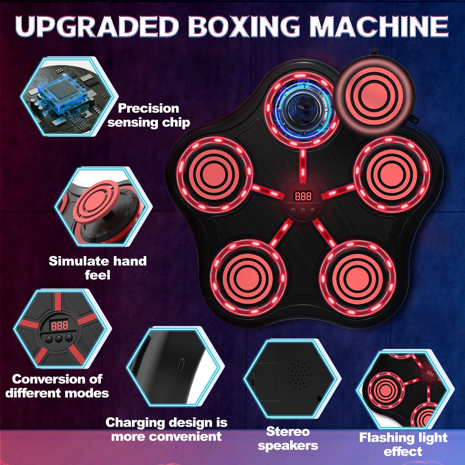 Five key boxing target-black body-black keys-red light-red  Musical Boxing Machine Five key boxing target-black body-black keys-red light-red  Musical Boxing Machine Five key boxing target-black body-black keys-red light-red  Musical Boxing Machine