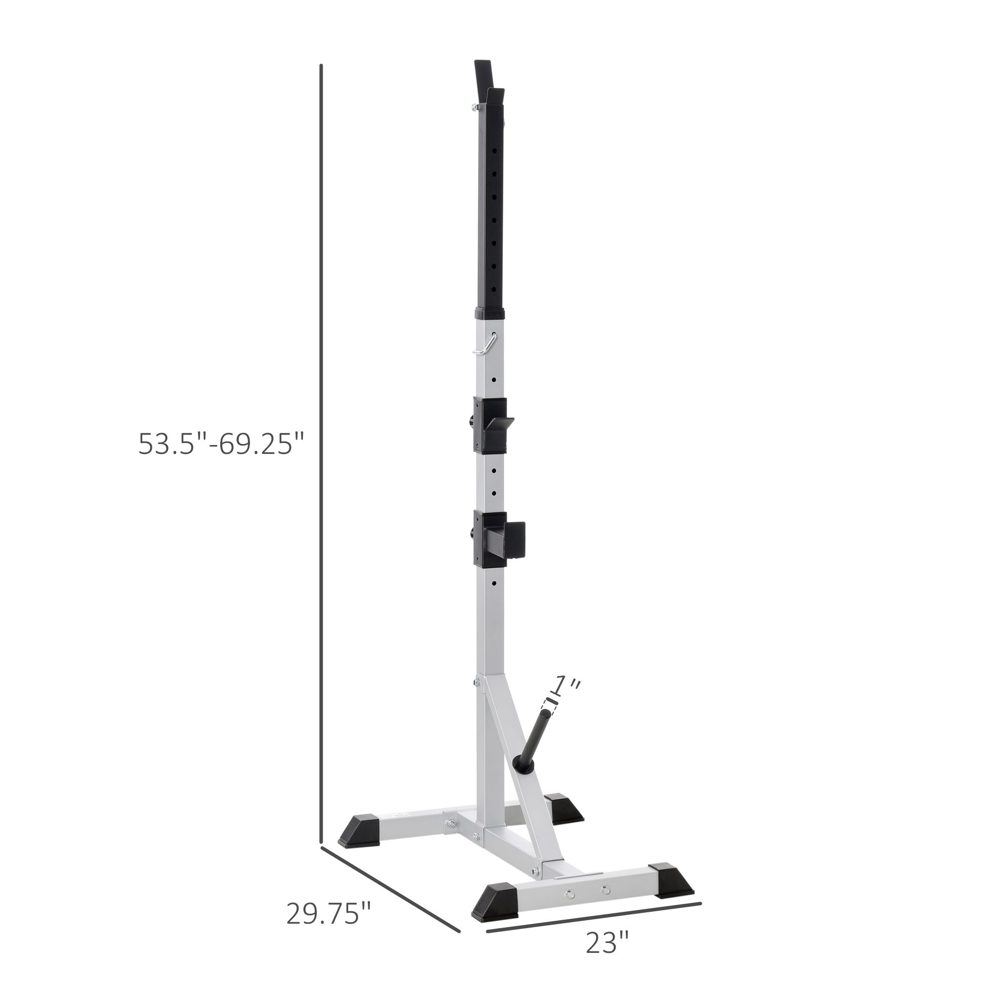 Transform your home into a powerhouse of fitness with Soozier's adjustable squat racks, designed for those who cherish strength training in the comfort of their own space. Crafted from solid steel, these racks support up to 440 lbs, ensuring durability and safety. With adjustable heights from 53.5" to 69.25", they cater to your unique needs. The sturdy "H" bases and anti-slip rubber caps offer stability and floor protection. Ideal for creating a gym-like experience at home, these racks are perfect for achieving your fitness goals without stepping outside.