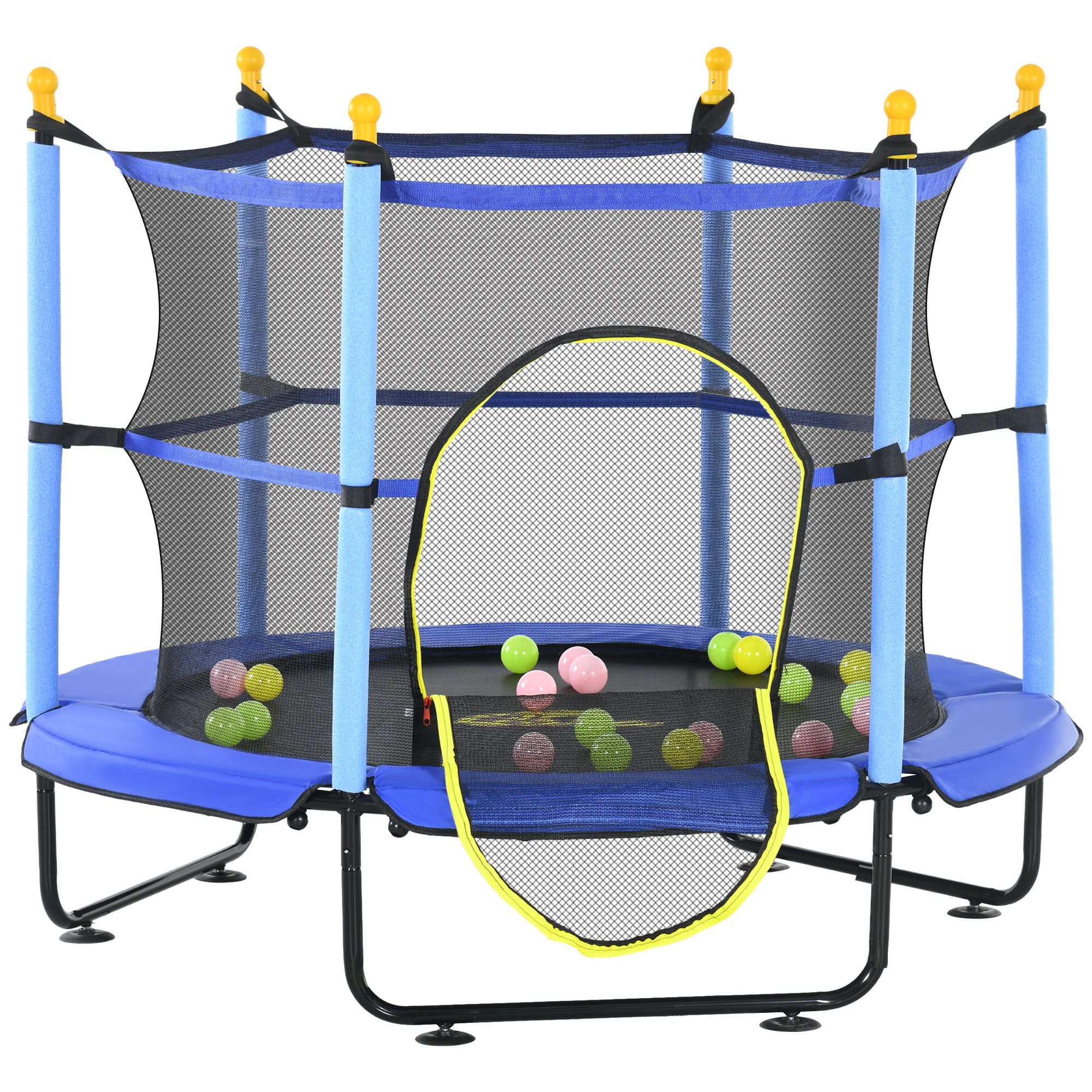 Jump into the fun zone. Qaba's large trampoline is a great playtime companion for your kids. A 360-degree all-around enclosure net ensures a safe bouncing experience, so you can have peace of mind while they have bouncing fun. The spacious jumping area allows for various jumps, keeping them active and engaged. The U-shaped legs provide stability, and the wear-resistant materials ensure outdoor readiness. Get ready; a ball pit adds to the fun with extra excitement.