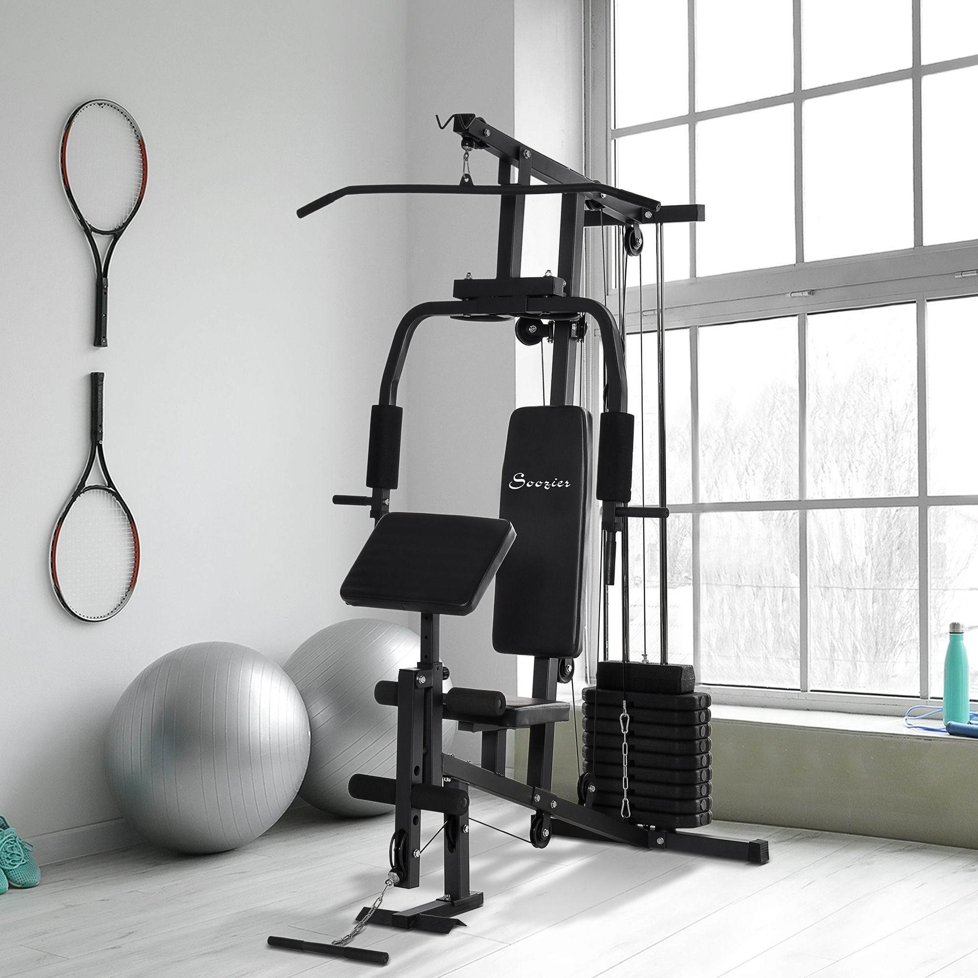 Soozier Home Gym Station Multi-function Fitness Workout Bench Black Comprehensive Exercise Hub 58.25 L x 42.5 W x 81.5 H Soozier Home Gym Station Multi-function Fitness Workout Bench Black Comprehensive Exercise Hub 58.25 L x 42.5 W x 81.5 H Soozier Home Gym Station Multi-function Fitness Workout Bench Black Comprehensive Exercise Hub 58.25 L x 42.5 W x 81.5 H