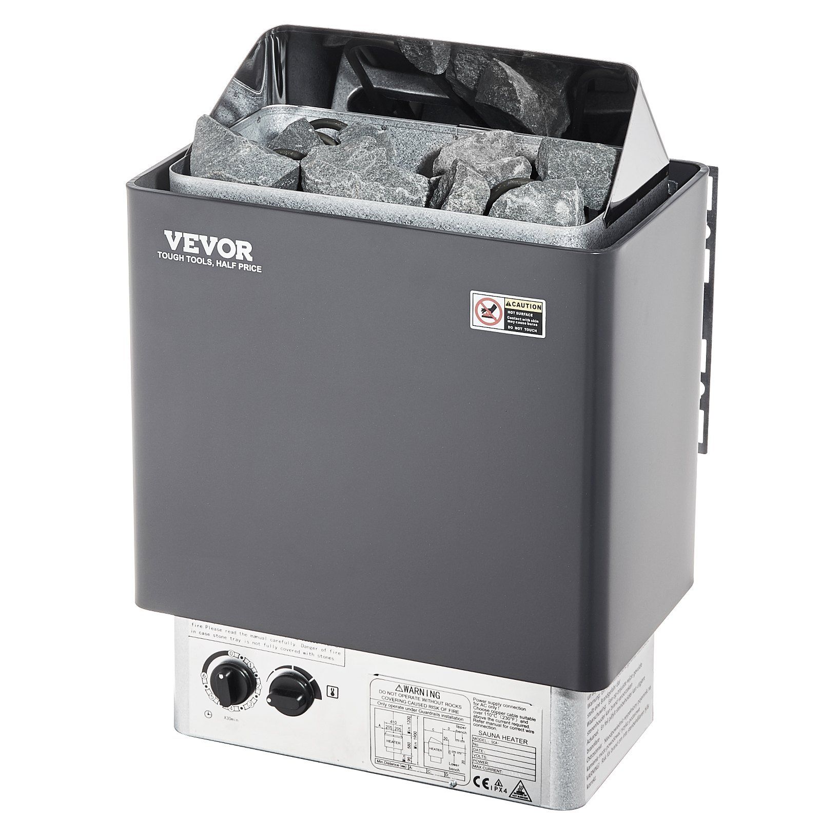 1.Fast Heating: Power: 3KW; Suitable Sauna Room: 70-141 cu.ft / 2-4 m³; Dimension: 16.1'' x 10.6'' x 22''. Sauna Stones Need: 33 lbs / 15 kg. Note: Sauna stones are NOT INCLUDED. The ample stone capacity allows the stones to absorb and store heat, ensuring effective heat retention and dispersion.