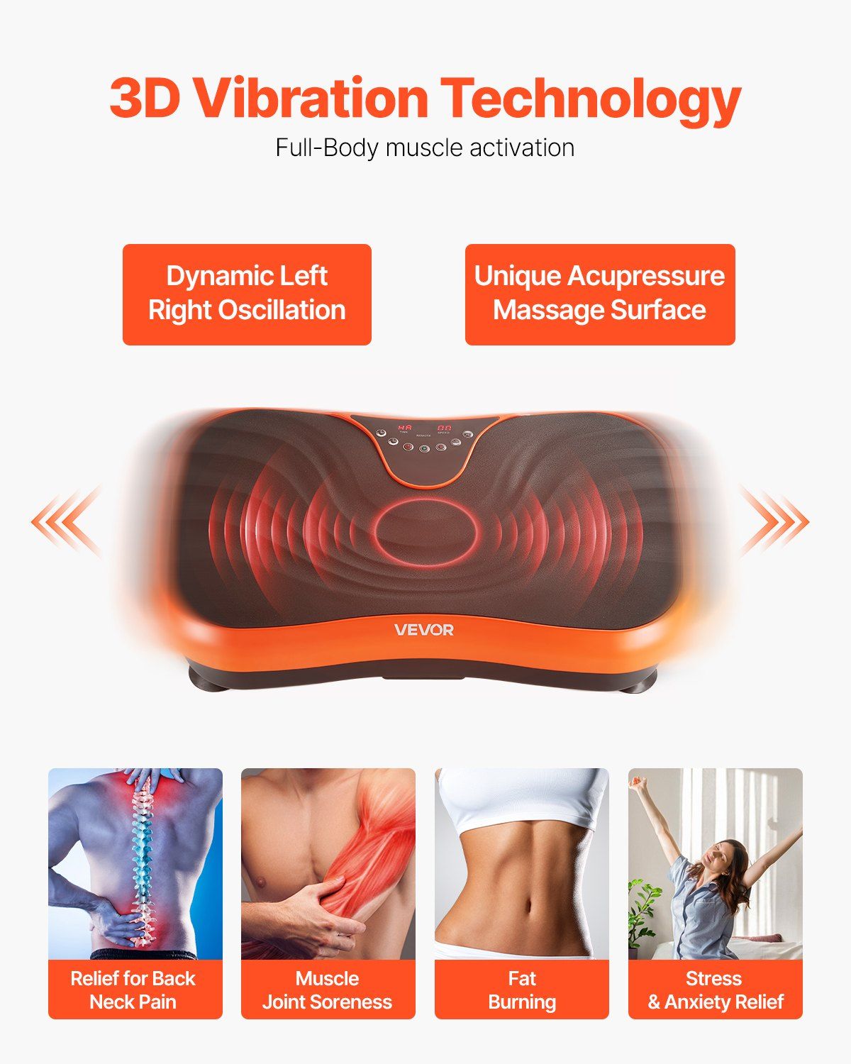 1. Full-Body Muscle Activation: Using advanced 3D vibration technology, the left-right oscillation targets all muscle groups. The acupressure surface helps relieve pain, supports fat burning, and reduces stress, anxiety, and muscle soreness